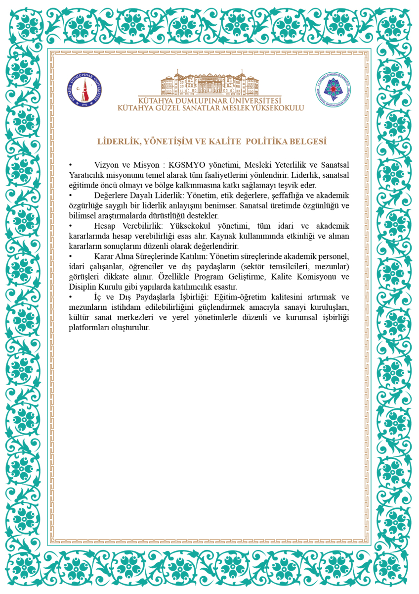 - Politikalarımız / Liderlik, Yönetişim ve Kalite Politika Belgesi