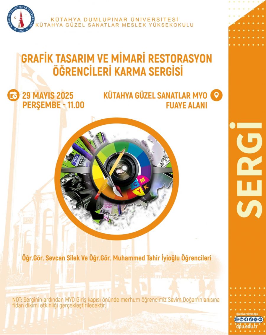 | 17 | Grafik Tasarım ve Mimari Restorasyon Öğrencileri Karma Sergisi | Sergi | 29 Mayıs 2025 11:00 | ![]() |