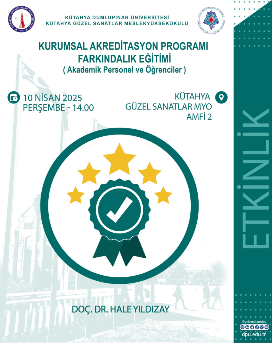 | 12 | Kurumsal Akreditasyon Farkındalık Eğitimi | Diğer Etkinlikler | 10 Nisan 2025 14:00 | ![]() |